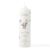 Cerziies® Taufkerze TOBI Junge oder Mädchen mit Name und Datum, individuell und handverziert 2510